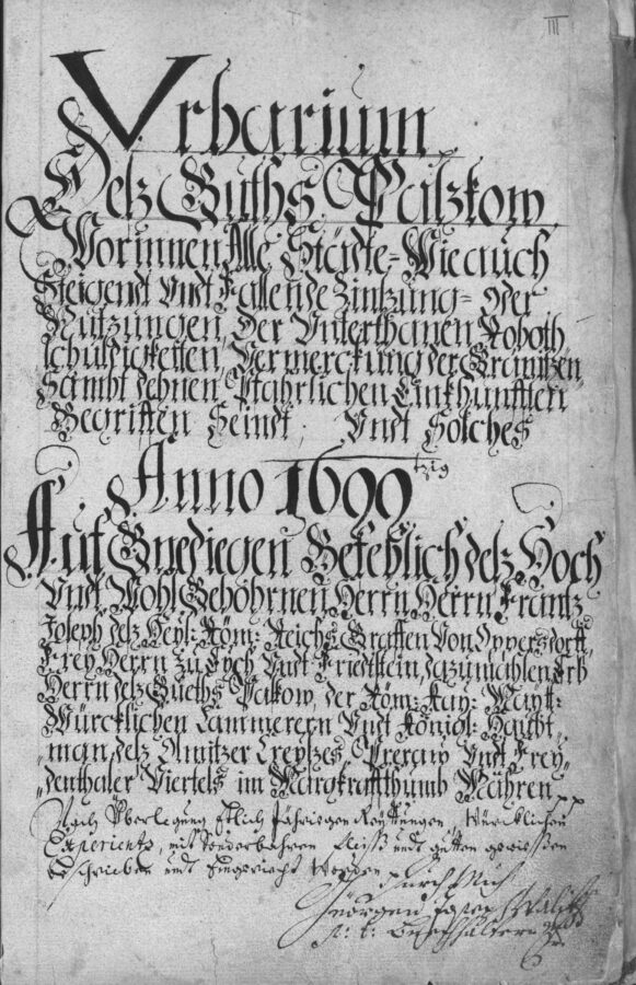 Titulní list paskovského urbáře z roku 1699. Zdroj: digitální badatelna ZAO.