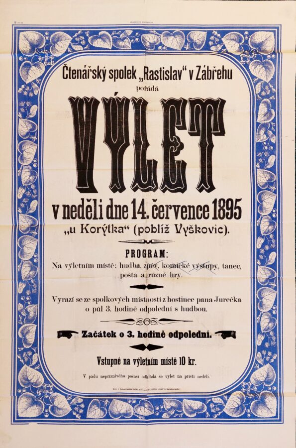 Plakát Čtenářského spolku Rastislav z roku 1895. Fotografie Zemský archiv Opava.