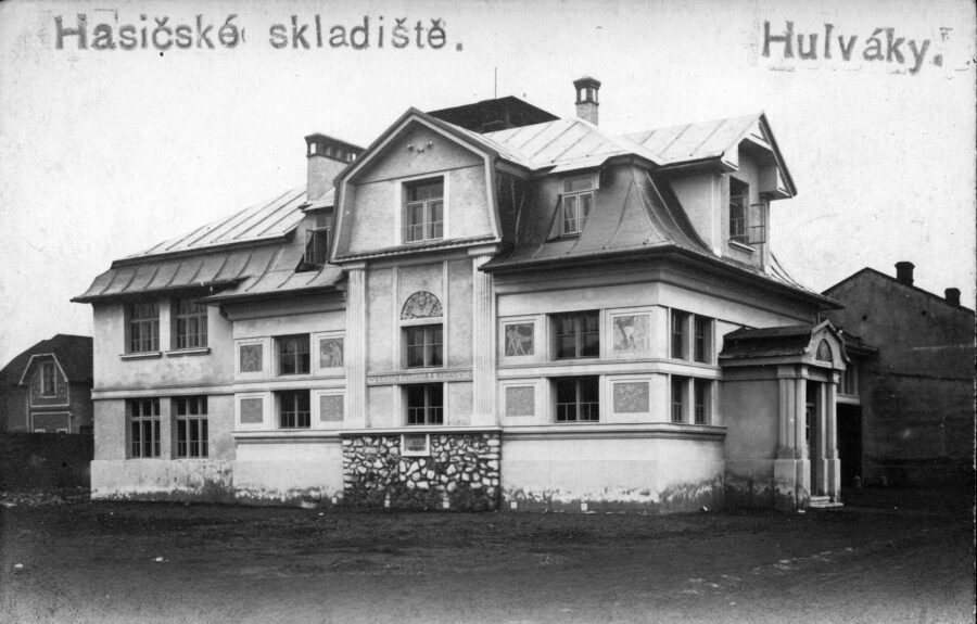 Hasičská zbrojnice na současné Varšavské ulici v Hulvákách sloužila od 20. let 20. století částečně potřebám knihovny. Fotografie Archiv města Ostravy.