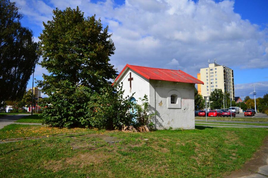 Druhou zděnou kapličku nalezneme na svahu nad autobusovou zastávkou Pískové doly, směr Nová Ves. V usedlosti č. p. 25 hospodařil rolník Svoboda, jeho stavení stálo na již zmíněném svahu. Jednoho dne Svoboda vyjížděl s povozem taženým koňmi z usedlosti, když tu se koně splašili a rozběhli se i s vozem k dnešní ulici U Hrůbků. Jelikož nebyl tehdy svah osázen stromy (osázen až za starostování Vladimíra Hradečného, po roce 1913), jako je tomu dnes, sjeli koně i s vozem po svahu a zabili se. Rolník měl štěstí – stačil z vozu seskočit a nic se mu nestalo. Na paměť této události nechal postavit kapličku, která se nám zachovala, ač v ne příliš zdařilé podobě, dodnes. Ovšem v kronice Zábřehu je zaznamenána i druhá verze příběhu – zápletka je stejná, jen závěr se liší – s koňmi se zabil i rolník Svoboda. Tak o události alespoň hovořil přímý pamětník neštěstí, který se narodil v Zábřehu 13. října 1875. Na fotografii z roku 1937 je kaplička zachycena ještě ve své původní podobě. Jaká socha byla umístěna ve výklenku, se mi najít nepodařilo – snad to byl svatý Jan. Z fotografie je patrno, že se nám dodnes nezachoval ani štít kapličky, opět s výklenkem se soškou. Byla zde umístěna Panna Marie oděná sluncem. Na počátku 20. století byla kaplička v zchátralém stavu, poznamenána vandaly. V současnosti je kaplička zazděna a natřena oranžovou a okrovou barvou, střecha je plechová.