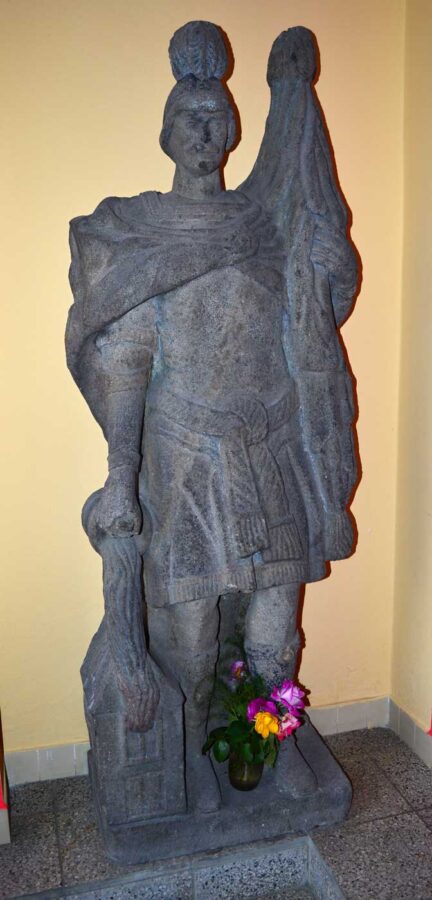 Pokud nahlédnete skrz sklo do zádveří hasičské zbrojnice na Dolní ulici, uvidíte zde kamennou sochu sv. Floriána z roku 1872, která je v zbrojnici umístěna od roku 1983. Socha byla zhotovena z hrubého pískovce na náklady zábřežského rolníka Štefana Neničky. Pozlacený Florián byl vysvěcen 27. října 1872 na paměť uchránění stodoly plné obilí před požárem. Stodolu zapálil neznámý nocležník, který po založení požáru beze stopy zmizel. Oheň byl naštěstí včas zpozorován a uhašen. Hospodářská usedlost č. 7 byla gruntovně zavázána sochu udržovat a opravovat. Ve 20. století se před hasičskými slavnostmi tradovalo, že neumyjí-li hasiči sochu sv. Floriána, bude na hasičskou slavnost pršet. Později socha stála před bránou cvičiště dobrovolných hasičů na Horymírově ulici, které byla za skulpturou vybudováno v roce 1938. Dodnes se u bývalého hřiště nachází podstavec sochy, který již není v nejlepším stavu. Před více než 30 lety byla socha sejmuta z podstavce – mohou připomínat Romea a Julii. Zdali se ještě někdy shledají?