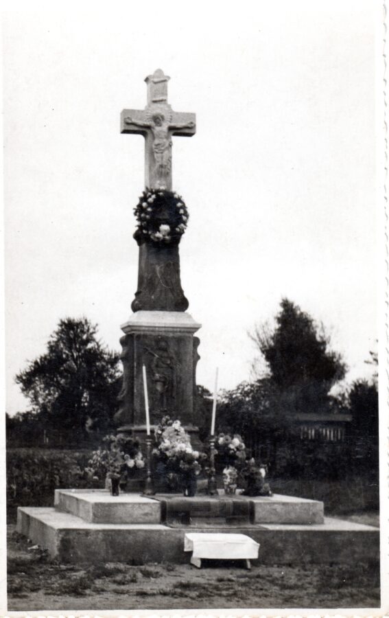 Nyní přejdeme k zaniklým křížům. Z roku 1875 máme zprávu o železném kříži, který byl posvěcen 20. října 1850 uprostřed obce na novém kamenném mostě. Tento most byl pravděpodobně umístěn v prostoru pod dnešním zámkem.