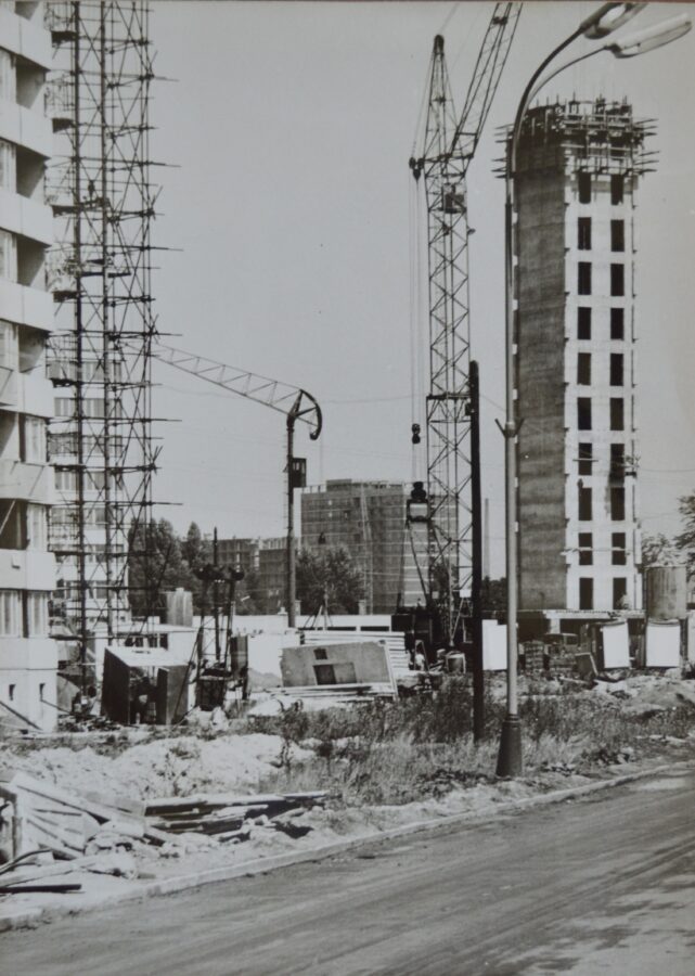 Kdo měl v 60. letech možnost zpozorovat stavbu věžových domů V-OS, jistě mi dá za pravdu, že proces výstavby byl velmi zajímavý a značně odlišný, od zbylé panelové výstavby. Stavba započala budováním monolitického železobetonového jádra, jádra čtvercového půdorysu, ve kterém se nachází schodiště, dvě výtahové šachty a společné chodby. Jádro bylo betonováno posuvným bedněním až do finální výšky domu, při této fázi výstavby věžových domů V-OS jste tak mohli spatřit nezvykle vysoký a úzký hranol.