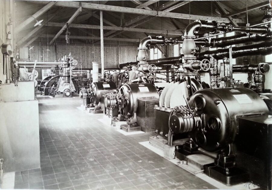 V sousedství pískovny vybudovaly Vítkovické železárny též čerpací stanici z hrázděného zdiva (1908), jejíž novější objekt z 30. let z režných cihel stojí u Říční ulice dodnes (tzv. Maschinenhaus). Říční voda z Odry se čerpala nízkotlakými čerpadly, procházela filtrovacím zařízením umístěným ve zvláštní budově, aby pak byla dopravována potrubím o průměru 50 cm do jednotlivých závodů železáren. Potrubí vedlo dnešními ulicemi Říční, U Hrůbků, Dolní, Závodní, Ruská a počátkem 50. let 20. století bylo prodlouženo až k Nové huti v Ostravě-Kunčicích. V letech 1960–1962 byla čerpací stanice rozšířena a modernizována.