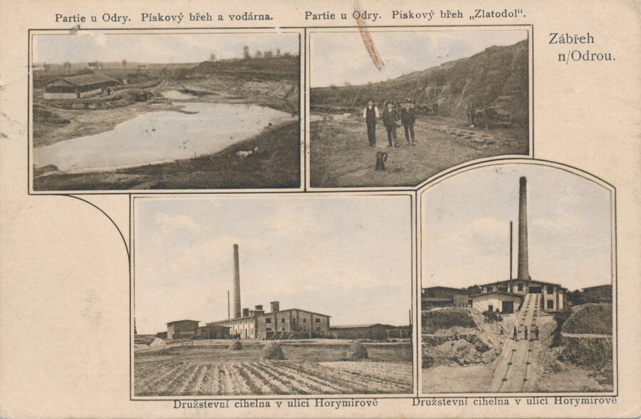 Nejstarší pískovna vznikla na území Zábřehu nad Odrou v roce 1895. Jejím zakladatelem i majitelem byl Ignatz Wincenz Goldberger, muž německo-židovského původu. Důl byl založen na pravobřežní terase řeky Odry. Pokud bychom si chtěli představit, kde se poměrně velká plocha pískové jámy rozkládala, musíme najít v současné mapě prostor sahající od ulice Říční podél Odry k Avion Shopping Parku. Těžil se zde ve velkém písek a také jíl, který se pro změnu používal od roku 1909 k pálení cihel v zábřežské cihelně, která stála nad pískovnou.