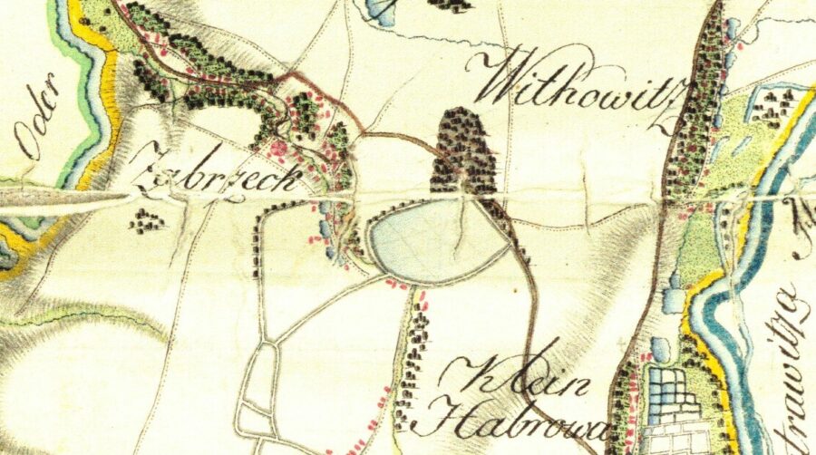 Víme tedy, že již v závěru 14. století byly v manském statku Zábřeh dva díly. Na obou se jmenovitě uvádějí dvory (1394 Závoří, 1408 stará tvrz). Roku 1408 skládá Hanuš ze Zábřehu lenní přísahu z třetí části Zábřehu – za statek a dva rybníky. Uvádí se Zawrzye s imarginálií, že pojmenování značí Zabrzech. Z těchto informací vyplývá, že v Zábřehu byly dva lenní statky. Zatímco Hanušův ležel na území dnešního Zábřehu, druhý statek Jindřichova syna Alše ležel v dnešní Nové Vsi, v Heinrichsdorfu.