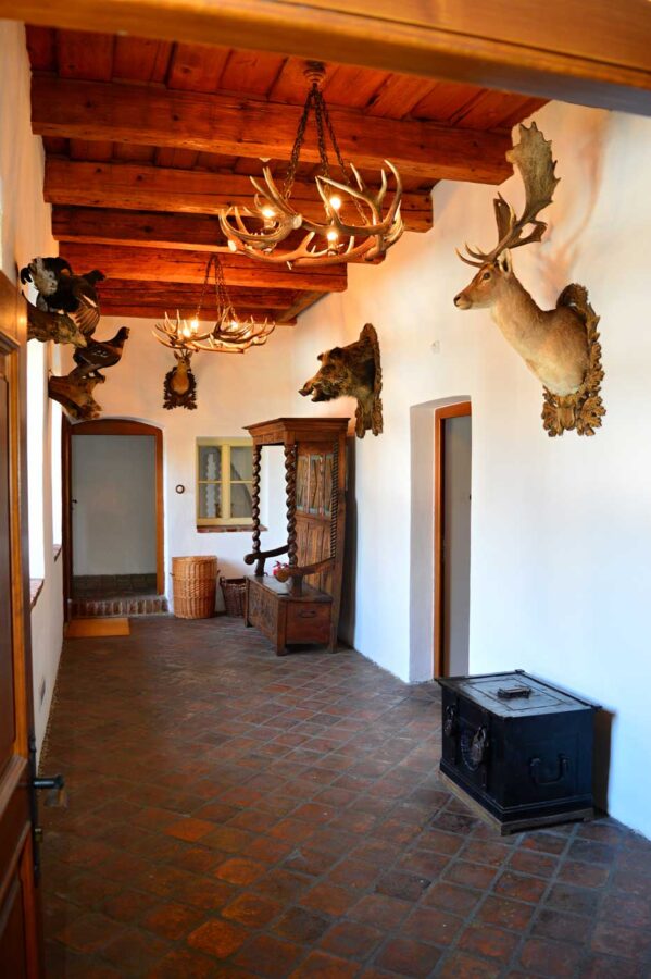 Nové hospodářské sídlo potřebovalo také hospodářské zázemí. U zámku se nacházel pivovar a rozlehlý dvůr se stodolami, čtyřmi chlévy, dvěma maštalemi pro koně a dalšími příslušenstvími. Patřily k němu haltýře (ve středověku malé rybníky, kam se navozily živé ryby a odtud se postupně vylovovaly) s rybami k okamžitému kuchyňskému zpracování a velké ovocné a zeleninové zahrady. Prostranství před zámkem zdobila květinová zahrádka. Na nádvoří byla vyhloubena studna, z níž se jímala kvalitní voda, kterou majitelé zámku považovali za největší přednost: ,,Item v tej tvrzi v zábřežskej jest stálá a jistá voda, totižto studně v placu, pramen jistý vody, kteráž jest velmi švarná a zdravá. Za takovou vodu a pohodlnost v tvrzi, kteréž jest v čas nebezpečnej, čehož Pán Buoh uchovati rač, velmi za potřebné, budouce nemalejm nákladem zspuosobena, to za nejlepší poklad k tej tvrzi se pozuostavuje.“